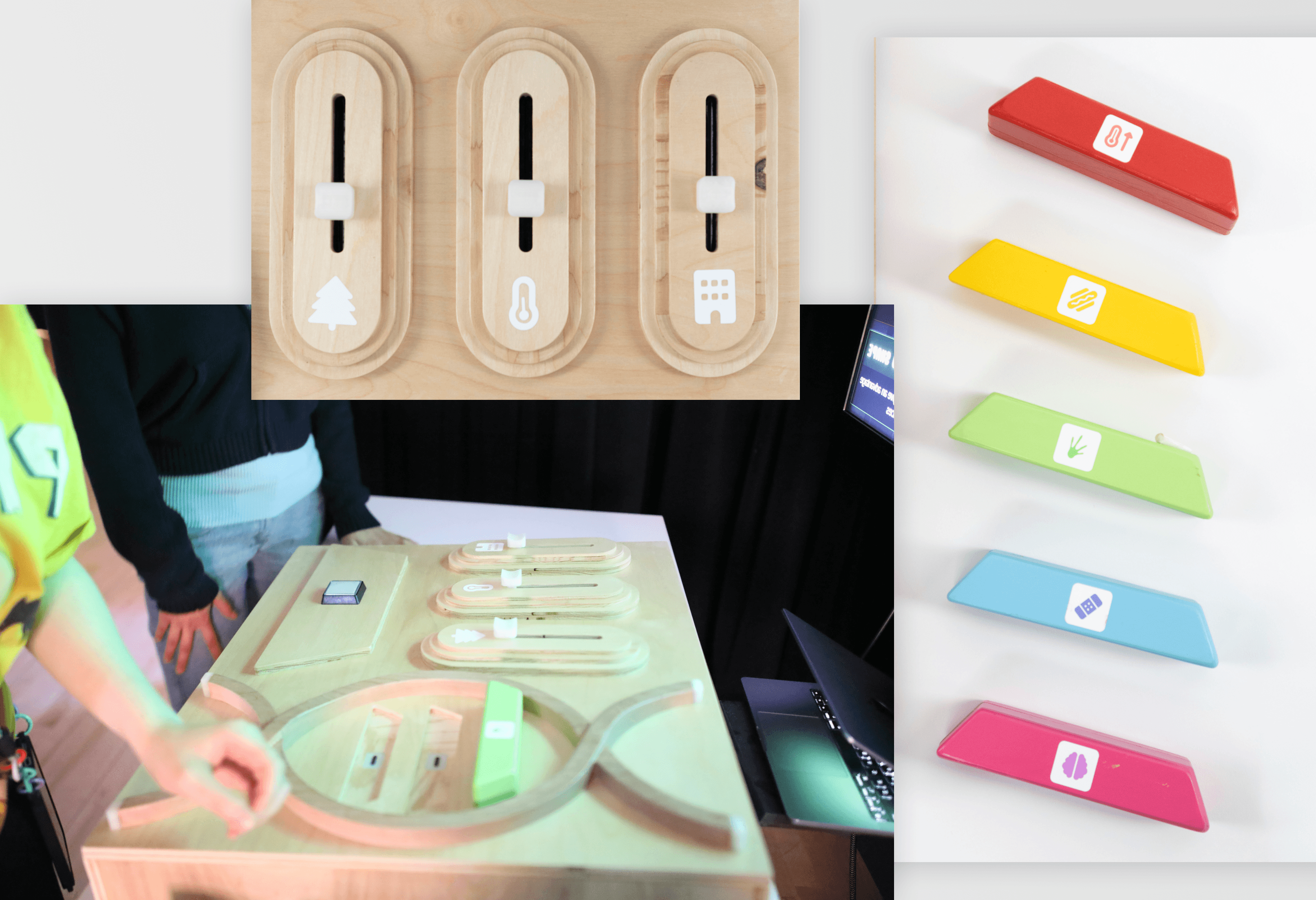 I focused primarily on Unity development and integrating the electronic components, but also helped design and assemble the control panel. Noah modeled it in Fusion 360, we cut it on a CNC, glued it together, and added the circuitry. The blocks and slider knobs were 3D printed. The Adaptation Station was selected for the ITP Spring Show, where dozens of visitors got to experience it!